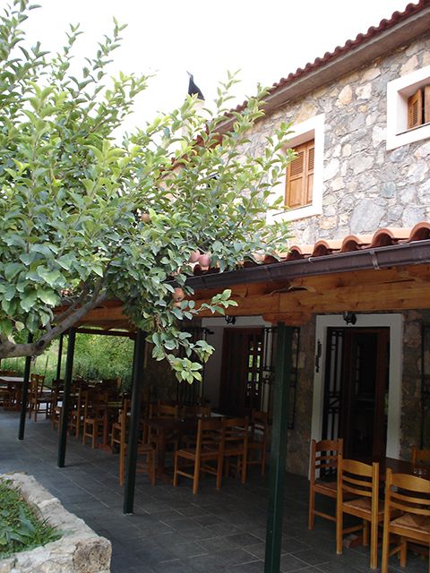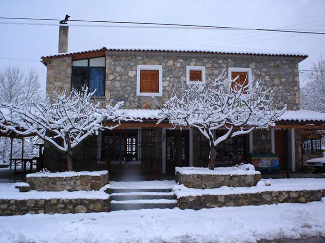 Το χειμώνα απολαμβάνετε το φαγητό σας δίπλα στο τζάκι, ενώ το καλοκαίρι στη σκεπαστή βεράντα με δροσιά και απεριόριστη θέα στο δάσος.